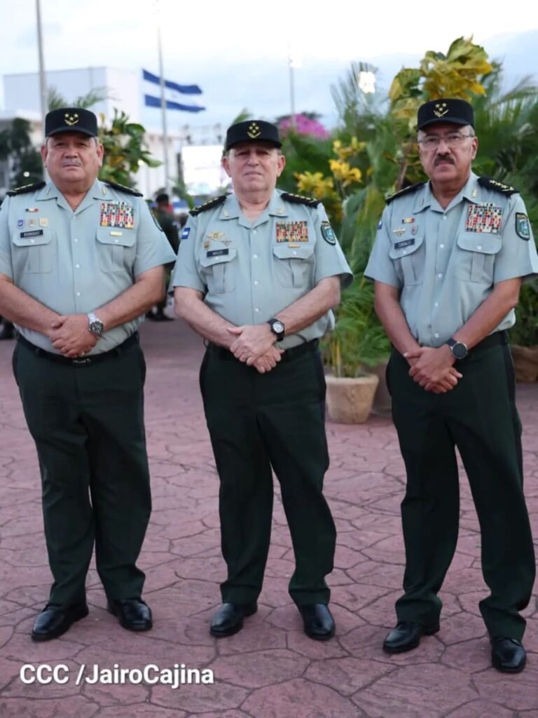 Asimismo, los Coroneles Lester Joaquín Cuadra López, Néstor Rodolfo Martínez y Freddy Domingo Cerrato González fueron promovidos al rango de Generales de Brigada, honores que representan la continuidad de la jerarquía y la modernización institucional del Ejército de Nicaragua.