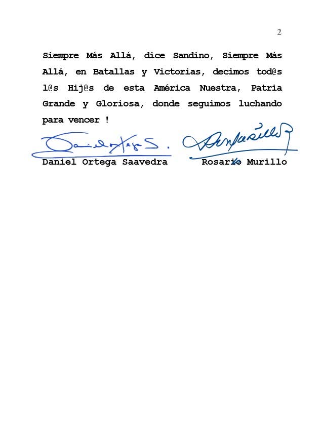 «Siempre Más Allá, dice Sandino, Siempre Más Allá, en Batallas y Victorias», afirman en el mensaje final, reiterando la vigencia del espíritu revolucionario que hermana a Nicaragua con los procesos de transformación social en América Latina.