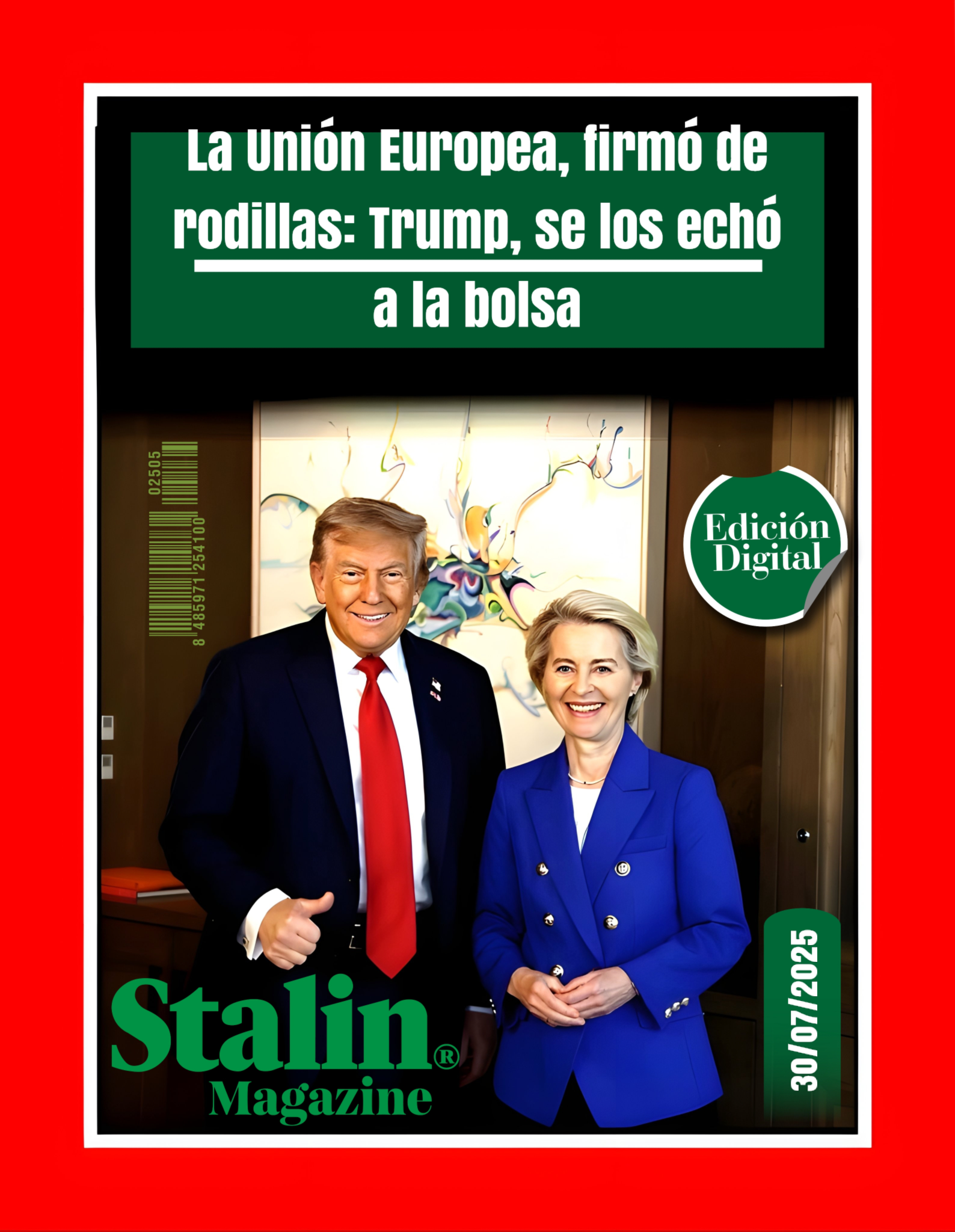 Lo que acaba de firmar la Unión Europea con Donald Trump no es un acuerdo. Es una rendición en toda regla. Una entrega total, sin condiciones, sin orgullo, sin una sola línea que defienda el interés del viejo continente.Si alguien tenía dudas sobre quién manda hoy en la relación transatlántica,...