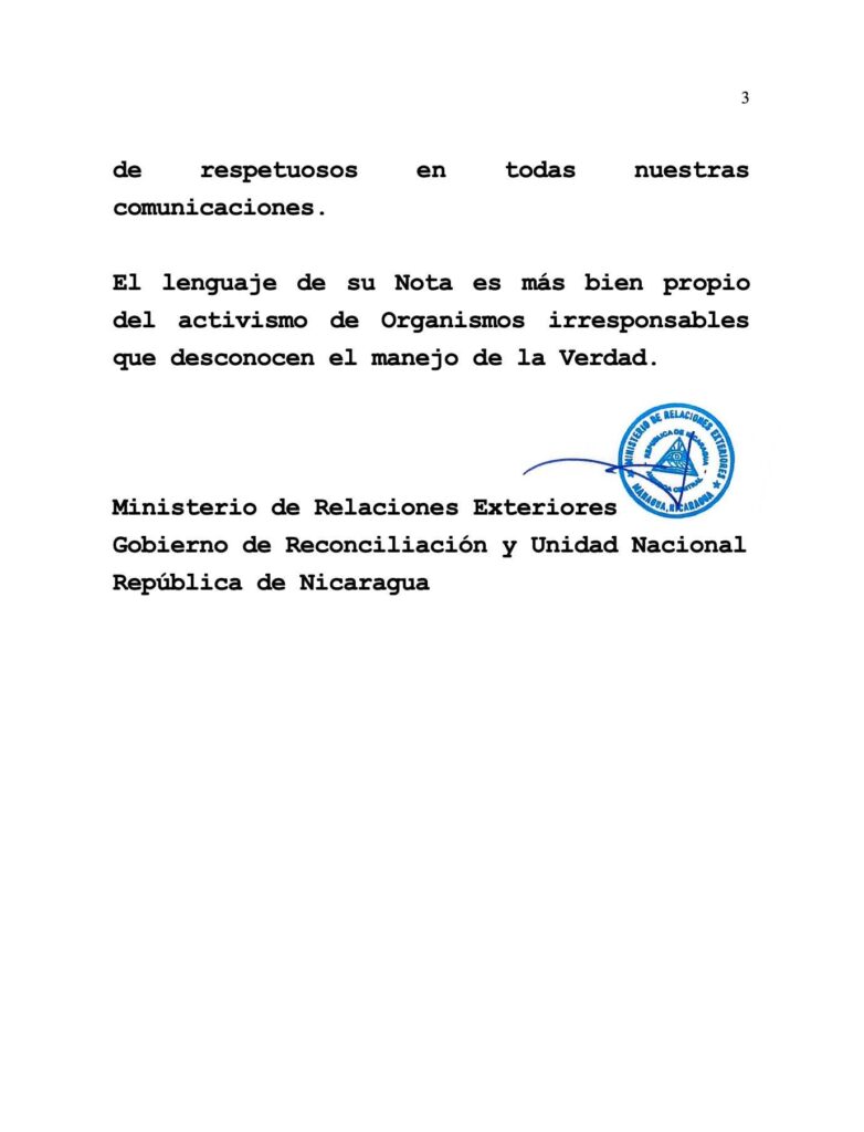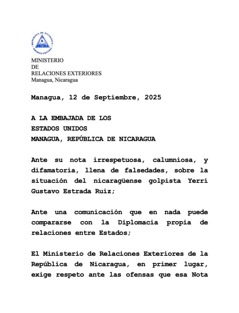 Nicaragua de forma contundente rechaza nota difamatoria de la Embajada gringa, sobre el golpista Yerri Estrada