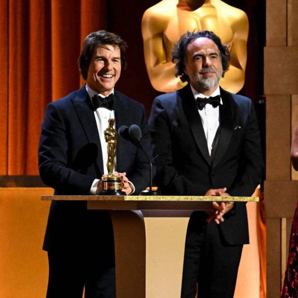 La entrega estuvo a cargo de Alejandro González Iñárritu, director con quien Cruise trabaja en una película que se espera para 2026. Subió al escenario, dijo unas palabras sobre la carrera del actor y le pasó la estatuilla frente a una sala llena.